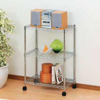 ●ポール径:19mm●商品サイズ(約):幅55×奥行35×高さ83cm●耐荷重:棚板1枚あたり50kg、全体(静止時)約150kg、全体(移動時)約75kg●材質 棚板・ポール/スチール(クロームメッキ) キャスター/ナイロン樹脂 固定部分/ABS樹脂★