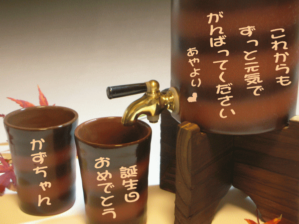 ■焼酎サーバー&ペアカップにお好みの文字彫刻!! 焼酎好きにはやっぱり焼酎サーバーは必需品!!雰囲気だけでなく味わいまでを 変えてしまう焼酎サーバー!!お酒好きには嬉しいプレゼント♪