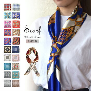 大判 正方形 スカーフ 90cm B シルク調 レディース ストール
